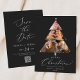 This delicate charcoal marry Christmas tree holiday save the date card is the perfect simple holiday greeting. The romantic minimalist design features lovely and elegant typography on a dark charcoal background with a clean and simple look. Personalise the front of the card with 4 photos, your names and the year. Include your wedding save the date info on the back, including a QR code for your wedding website.