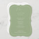 This classic menu card in bracket shape features modern calligraphy, a delicate white frame and contemporary typography on a Sage Green background. Perfect for a classic wedding or any other formal event or elegant wedding. On the back is a second delicate frame and room for your names and wedding date - or simply delete the text on the back. All colours of this wedding menu card can be changed.