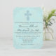 Subtle parchment paper style in soft blue green hues.. Embellished with fine flourishing details around the edges and a detailed cross. Traditional religious wording, may also be customised to meet your exact style or colours.