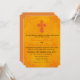 Subtle parchment paper style in deep gold and rust hues.. Embellished with fine flourishing details around the edges and a detailed cross. Traditional religious wording, may also be customised to meet your exact style or colours.