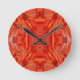 Delicate Feather Fractal Design - red Round Clock