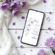 This wedding invitation design, subtly romantic, highlights the freshness of nature, creating a delicate and charming atmosphere for your celebration. The illustration of a floral branch in soft pastel purple tones emphasizes the natural and fresh feel of the design, while the dark blue text adds sophistication. The modern and clear typography complements the elegance of the design. The flowers, with soft and well-defined strokes, perfectly combine with the sophisticated typography that highlights "the WEDDING" with a unique touch in a stylized calligraphy, while the rest of the text in dark blue maintains modernity and clarity.