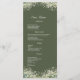 Introducing our Delicate Floral on Olive Green Wedding Menu, the perfect blend of elegance and simplicity for your special day. Crafted with a focus on affordable luxury, these invitations feature a charming design that showcases whimsical wildflowers and delicate florals, ideal for a romantic country garden wedding. The rich olive green background, complemented by dark sage and emerald accents, creates a modern yet timeless appeal, making it suitable for spring, summer, and fall celebrations.