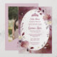 Delicate Floral Oval Quinceañera Tiara Invitation Design in Burgundy Tones with Photo Layout.