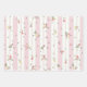Delicate Floral Pattern Pink Wrapping Paper Sheets - The floral pattern featuring delicate pink and yellow blossoms with green leaves scattered across a background of pink and white stripes. The white stripes are edged with a decorative, lace-like border.