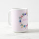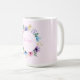 Delightful watercolor floral wreath design featuring delicate blooms in pink, purple, and blue, accented with metallic gold leaves on a soft pink background. This feminine and romantic design is lovely for fems of any age. Personalise with a name.