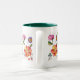 pencil drawing of flowers that looks very delicate on the mug. Both modern and old fashioned looking at the same time. I own 4 of these mugs and I enjoy using them.