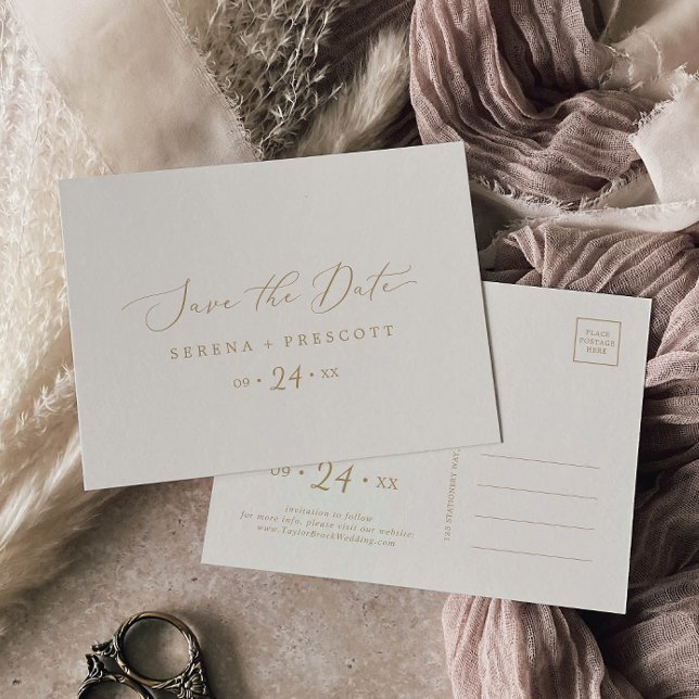 Delicate Gold and Cream Horizontal Save the Date Invitation Postcard