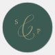 These delicate gold and green monogram envelope seals are perfect for a modern wedding. The romantic minimalist design features lovely and elegant champagne golden yellow typography on an emerald green background with a clean and simple look. Personalise these stickers with the initials of the bride and groom.