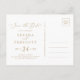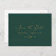 This delicate gold and green save the date postcard is perfect for a modern wedding. The romantic minimalist design features lovely and elegant champagne golden yellow typography on an emerald green background with a clean and simple look.