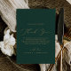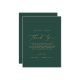 This delicate gold and green thank you reception card is perfect for a modern wedding. The romantic minimalist design features lovely and elegant champagne golden yellow typography on an emerald green background with a clean and simple look. Place these cards at the table setting for each of your guests at your wedding reception. Personalise the card with your names and a special thank you message.