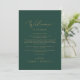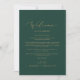 These delicate gold and green welcome letter & itinerary cards are perfect for a modern wedding. The romantic minimalist design features lovely and elegant champagne golden yellow typography on an emerald green background with a clean and simple look. The front of the card features a welcome letter and the back of the card features the wedding itinerary. These notes are perfect for destination weddings and hotel guest welcome bags.