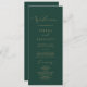 This delicate gold calligraphy green wedding party program is perfect for a modern wedding. The romantic minimalist design features lovely and elegant champagne golden yellow typography on an emerald green background with a clean and simple look. Include the name of the bride and groom, the wedding date and location, thank you message, order of service, wedding party and an optional "in loving memory" memorial.