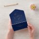 This delicate gold calligraphy navy wedding all in one invitation is perfect for a modern wedding. The romantic minimalist design features lovely and elegant champagne golden yellow typography on a navy blue background with a clean and simple look. Hand write your guest addresses on the back of the folded invitation, or purchase the coordinating guest address label stickers (sold separately).