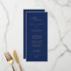 This delicate gold calligraphy navy wedding dinner menu card is perfect for a modern wedding. The romantic minimalist design features lovely and elegant champagne golden yellow typography on a navy blue background with a clean and simple look. This menu can be used for a wedding reception, rehearsal dinner, or any event.
