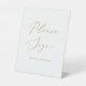 This delicate gold calligraphy please sign pedestal sign is perfect for a modern wedding. The romantic minimalist design features lovely and elegant champagne golden yellow typography on a white background with a clean and simple look. Customise the sign with your alternative guestbook that you would like them to sign.
