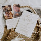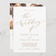 This delicate gold calligraphy proposal story wedding invitation is perfect for a modern wedding. The romantic minimalist design features lovely and elegant champagne golden yellow typography on a white background with a clean and simple look. Personalise your invitation with 3 engagement photos on the back and the story of how you met or your proposal story. Include an optional web address were your guests can get more details or to RSVP online.