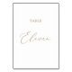 This delicate gold calligraphy table eleven table number is perfect for a modern wedding. The romantic minimalist design features lovely and elegant champagne golden yellow typography on a white background with a clean and simple look. The card prints on the front and back (double-sided). Other table numbers in the collection are sold separately.