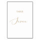 This delicate gold calligraphy table seven table number is perfect for a modern wedding. The romantic minimalist design features lovely and elegant champagne golden yellow typography on a white background with a clean and simple look. The card prints on the front and back (double-sided). Other table numbers in the collection are sold separately.