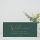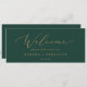 This delicate gold green hanging seating chart welcome header is perfect for a modern wedding. The romantic minimalist design features lovely and elegant champagne golden yellow typography on an emerald green background with a clean and simple look. The card prints on the front and back (double-sided). Please check the collection for the coordinating table number seating chart cards.