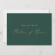 This delicate gold and green matron of honour proposal card is perfect for a modern wedding. The romantic minimalist design features lovely and elegant champagne golden yellow typography on an emerald green background with a clean and simple look. Customise the card with the name of the bride and the matron of honour. Personalise the back of the card with a personalised message.