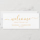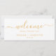 This delicate gold hanging seating chart welcome header is perfect for a modern wedding. The romantic minimalist design features lovely and elegant champagne golden yellow typography on a white background with a clean and simple look. The card prints on the front and back (double-sided).