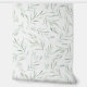 Hand-painted delicate watercolor leaves in grey-green on a white background.