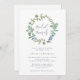 This lovely bridal shower brunch invitation features a soft, dusty coloured watercolor wreath with trendy green leaves and soft blue berries. Calligraphy style script typography is also featured for an elegant look.