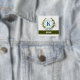 A delicate ivy wreath with a blue striped bow is layered over a fresh white background. Wedding appropriate design features the monogram "K" in blue. Button can be personalised with any name over the green ribbon banner. Design tip: For the font shown here, use all caps for the name.