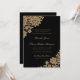 Delicate Lace Corner Black and Gold Script Wedding Invitation