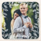 Delicate Leaves Frame Monogrammed Photo Square Paper Coaster