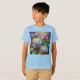 100% cotton so perfect for summer, It is a nicely designed t-shirt, the fabric is soft and the seams finished well, the body of the t shirt has no side seams. I bought a medium size for my two grandsons, aged 9 and 8 it will be slightly big on them but I would rather that than too small