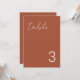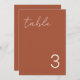 Modern and elegant design printed Delicate Minimalist Simple Terracotta Burnt Table Number Cards that can be customised with your text and add each table number card to your cart, one by one. Check out the Graphic Art Design store for other products that match this design!