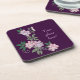 Delicate peonies elegant floral pattern with text coaster