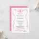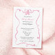 This modern and delicate Baby Shower invitation is perfect for. the mum-to-be expecting a baby girl. It features an calligraphy style illustration of a bow and ribbons that turn into a frame. This trendy design is both modern and classy. It matches with solid white and pink party supplies for a tender and stylish event.