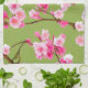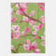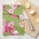 Delicate Pink Cherry Blossoms on Chartreuse Green Tea Towel