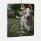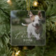 This delicate puppy's first Christmas dog overlay photo ceramic ornament is the perfect modern Christmas tree decoration. The romantic minimalist design features lovely and elegant black typography with a clean and simple look. This keepsake ornament reads "first Christmas". Personalise your double-sided ornament with a photo of your puppy, your puppy's name and the year.