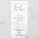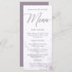 Dusty purple back and soft white with a pretty purple tint front, menu card with elegant calligraphy and delicate floral botanical.