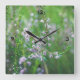 Square clock with feather's flowers could be a beautiful addition to your home interior.