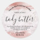 Body butter labels with a delicate yet luxurious design of shimmering rose gold ink and glitter on glammed up marble.