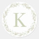 Delicate Sage Green Wreath Monogram Classic Round Sticker