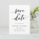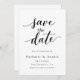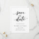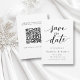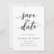 This elegant black-and-white wedding save-the-date card is perfect for a modern wedding. The simple design features elegant black calligraphy on a clean white background. The card also includes a QR code for the wedding website on the back.