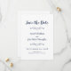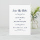 Elegant, delicate save the date cards in beautiful navy blue and white are classic, formal and timeless. Borderless romantic design allows you to easily choose the paper shape for your engagement announcement. Two decorative flourishes each containing a single heart delicately envelope the name of the bride and groom. For optimal results skip lines and capitalise as in sample.