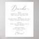 This delicate silver wedding drink menu sign is perfect for a modern wedding. The romantic minimalist design features lovely and elegant silver gray typography on a white background with a clean and simple look.