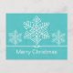 Clean and modern Delicate Snowflakes Christmas postcard in turquoise. Give your friends and family a dose of holiday cheer with this fun postcard. Customise the text to give this design more of a personal touch!