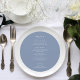 Romantic and delicate soft dusty blue watercolor floral wreath wedding menu.