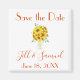 A lovely Save the date magnet, this design features "Save the Date" in orange font with sunflowers inside of a clear vase. Underneath that is the couple's name and wedding date. Order yours today!