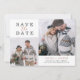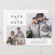 This simple and stylish wedding save the date card features two of your favourite personal photos, along with classic elegant dark grey text and faux rose gold script for a stunning minimalist look.