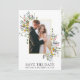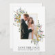 Modern Watercolor Wildflower Wedding Wedding Engagement Announcement Save The Date Card includes yellow, pink, purple, dusty blue and white wild flowers, eucalyptus leaves, sage green leaves and other botanical greenery on a gold frame. Couple Photo.