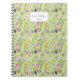 Delicate watercolour wildflowers on green notebook